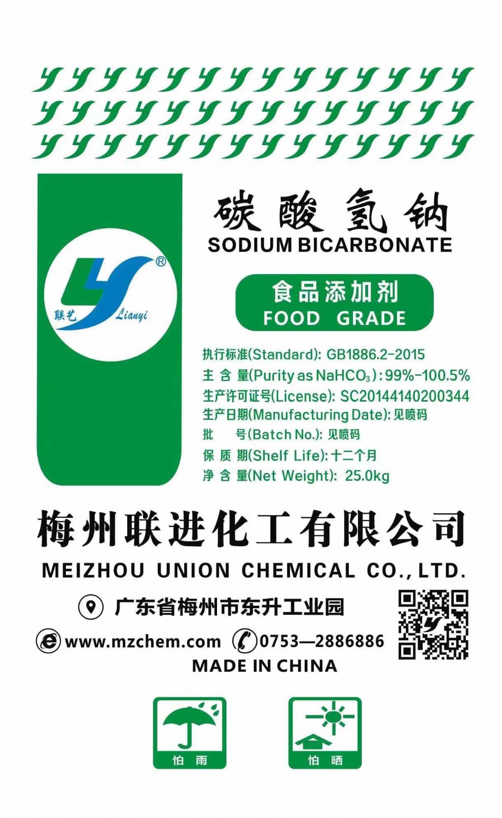 "Lian Yi" branded Sodium Metabisulfite is produced strictly in conformity with the national standard.